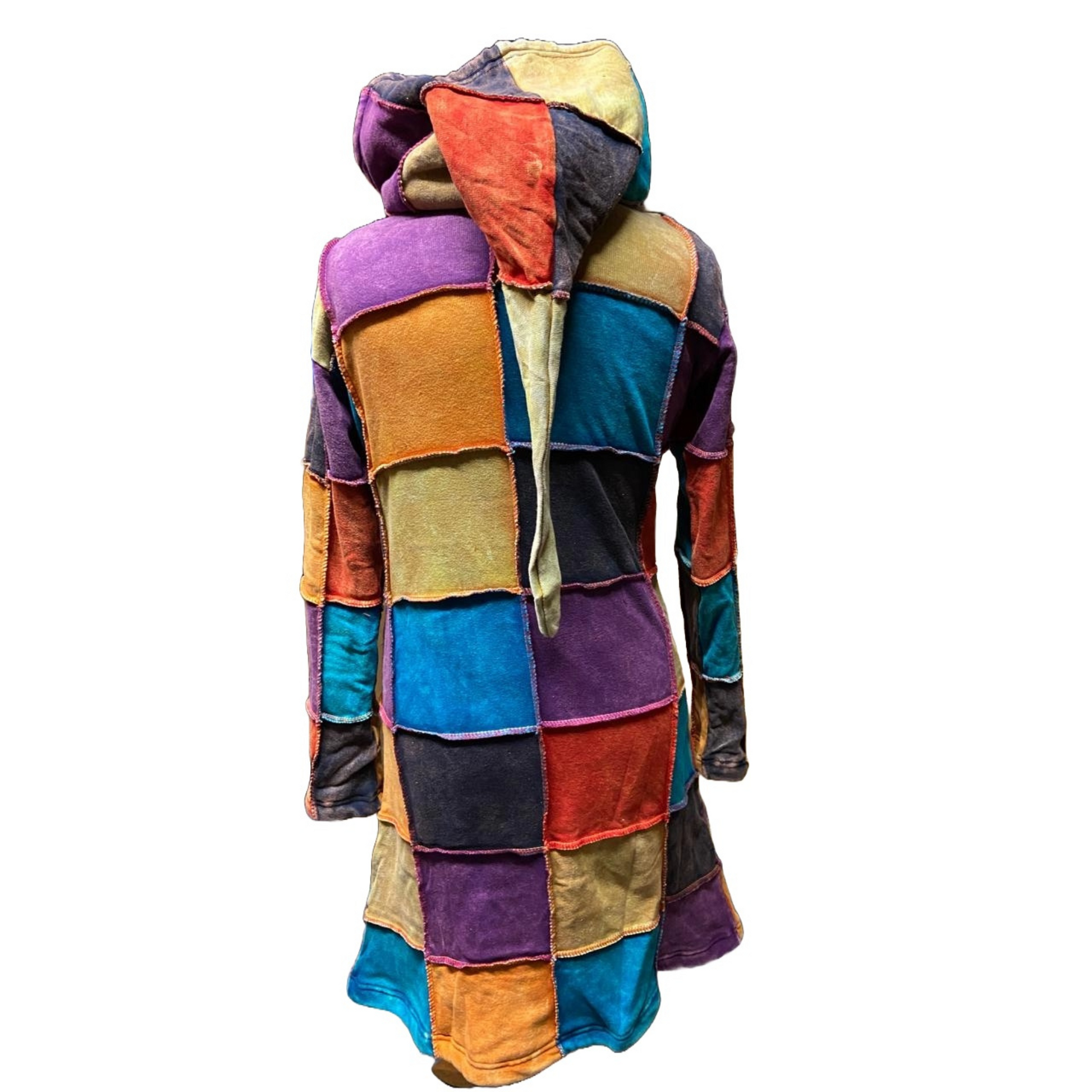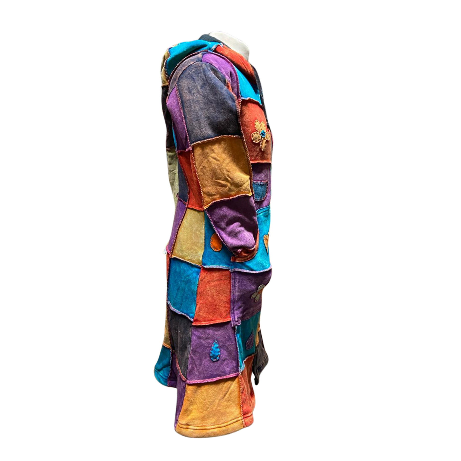 Shopoholic Fashion presents a stylish and cozy long hoodie for women, perfect for keeping you warm while adding a fashionable touch to your outfit. Whether you're lounging at home or heading out, this zip-up hoodie for women pairs effortlessly with jeans or leggings for a casual yet trendy look. Designed with intricate floral embroidery and a sun patchwork on the front, this hooded jacket blends comfort and elegance, making it an ideal choice for all seasons.