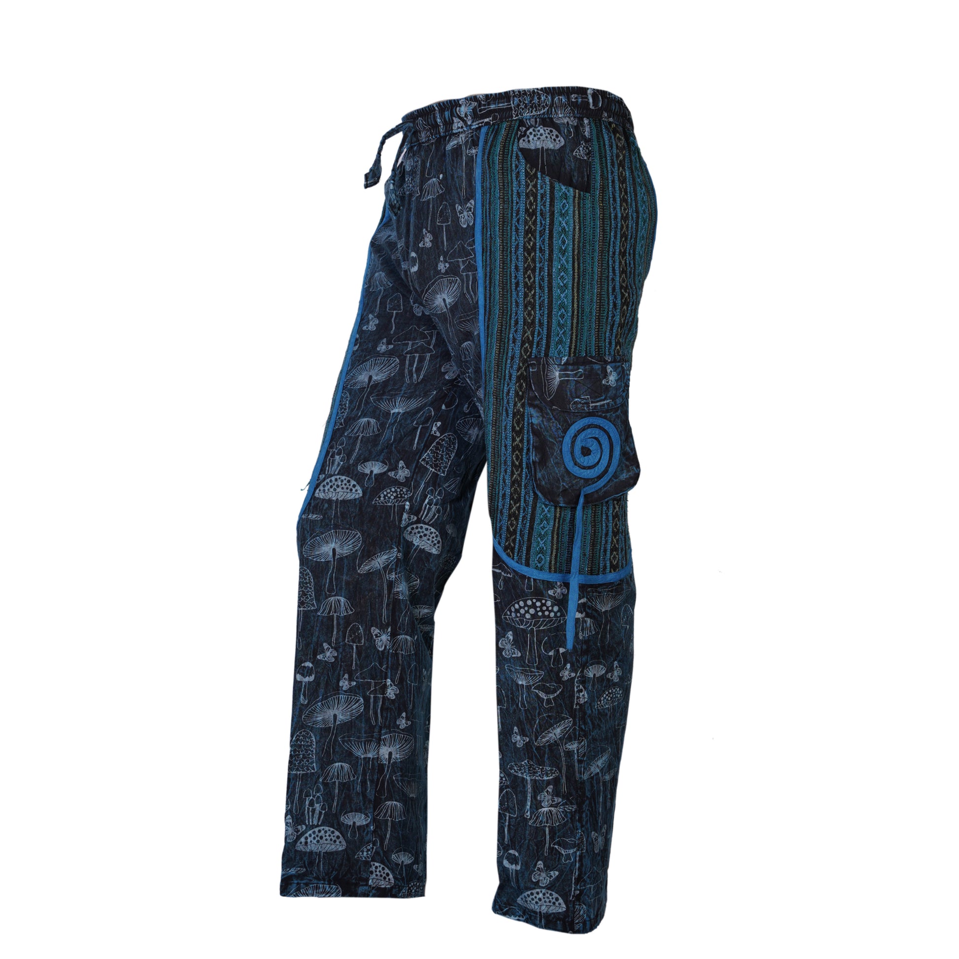 Men's Cotton Cargo Pants Boho Mushroom Print Festival Hippy Trousers