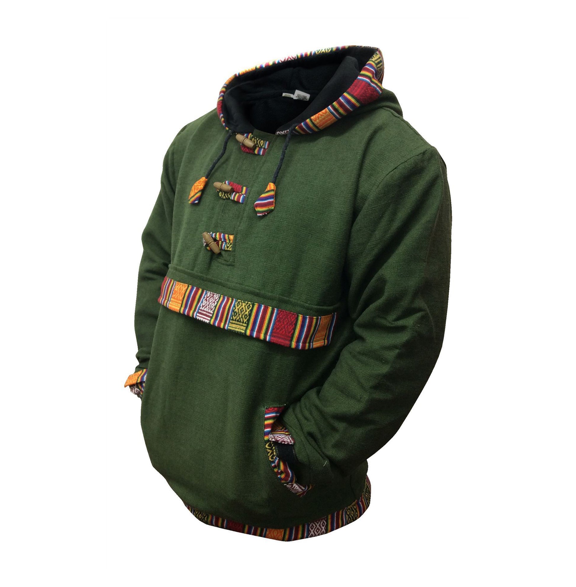 - Intricate Bhutanese pattern border on the bottom waist, hood, and chest.