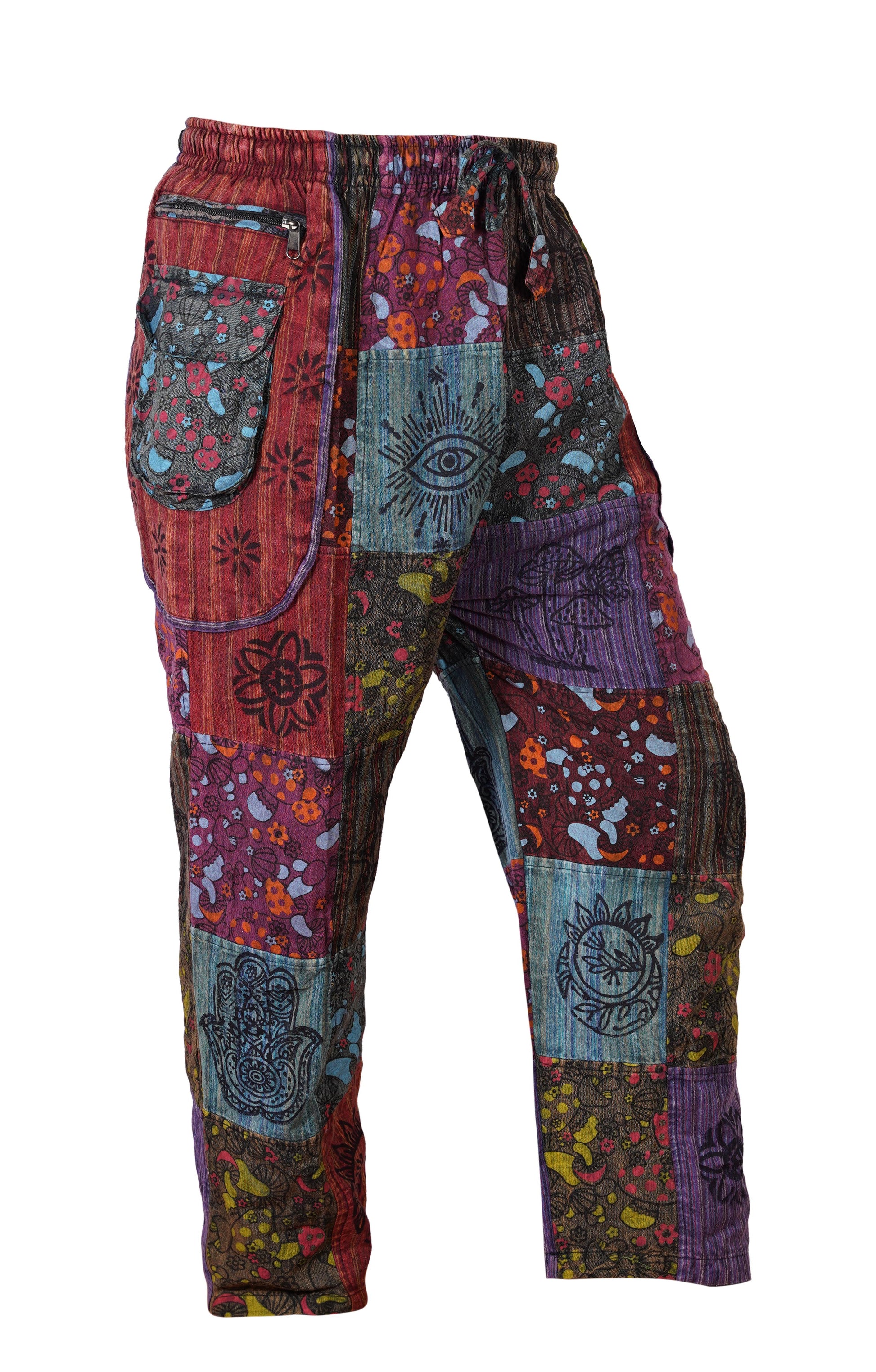 Mens Gothic Patchwork Cargo Trouser Stonewashed Bohemian Cotton Festival Hippy Pants