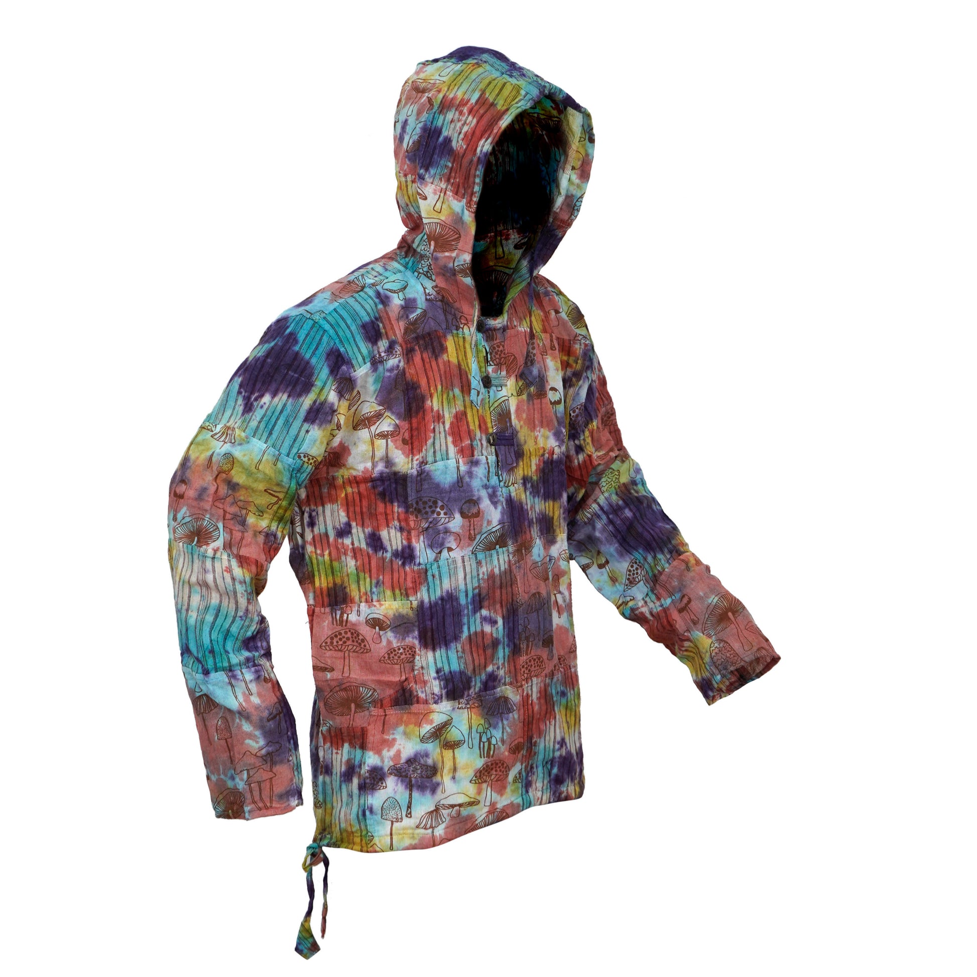 The multi-colour patchwork and tie-dye design, adorned with vibrant art on each block, transform this hippy shirt into a visual masterpiece. Crafted from 100% cotton, it ensures a cozy and warm feel, making it ideal for morning and noon wear in spring, autumn, and even light cold seasons. Our handmade winter shirts are a testament to meticulous craftsmanship, offering both steadiness and durability. Perfect for parties and as a thoughtful gift, they showcase a unique blend of style and substance. The special hood with a drawstring adds a touch of warmth and flair to your casual and festival wardrobe. The pullover lightweight jumper design, featuring long sleeves and a pocket, keeps you warm during outdoor walks and adds a practical touch to your everyday style.Β