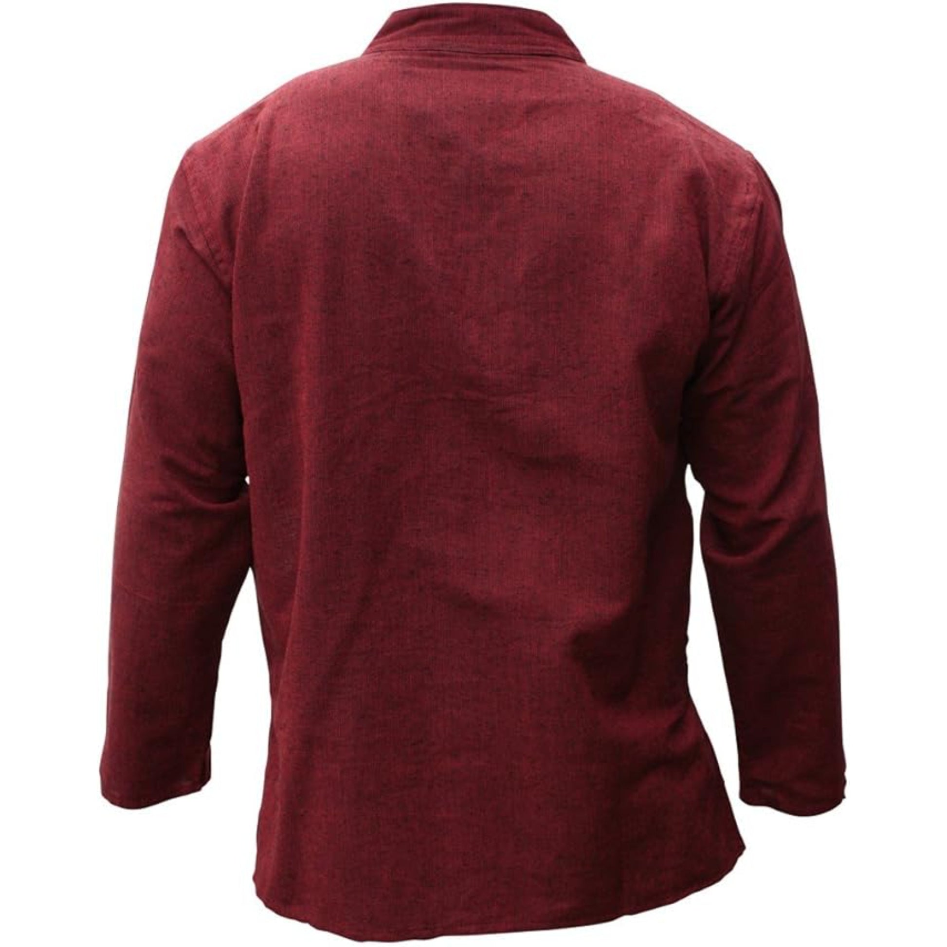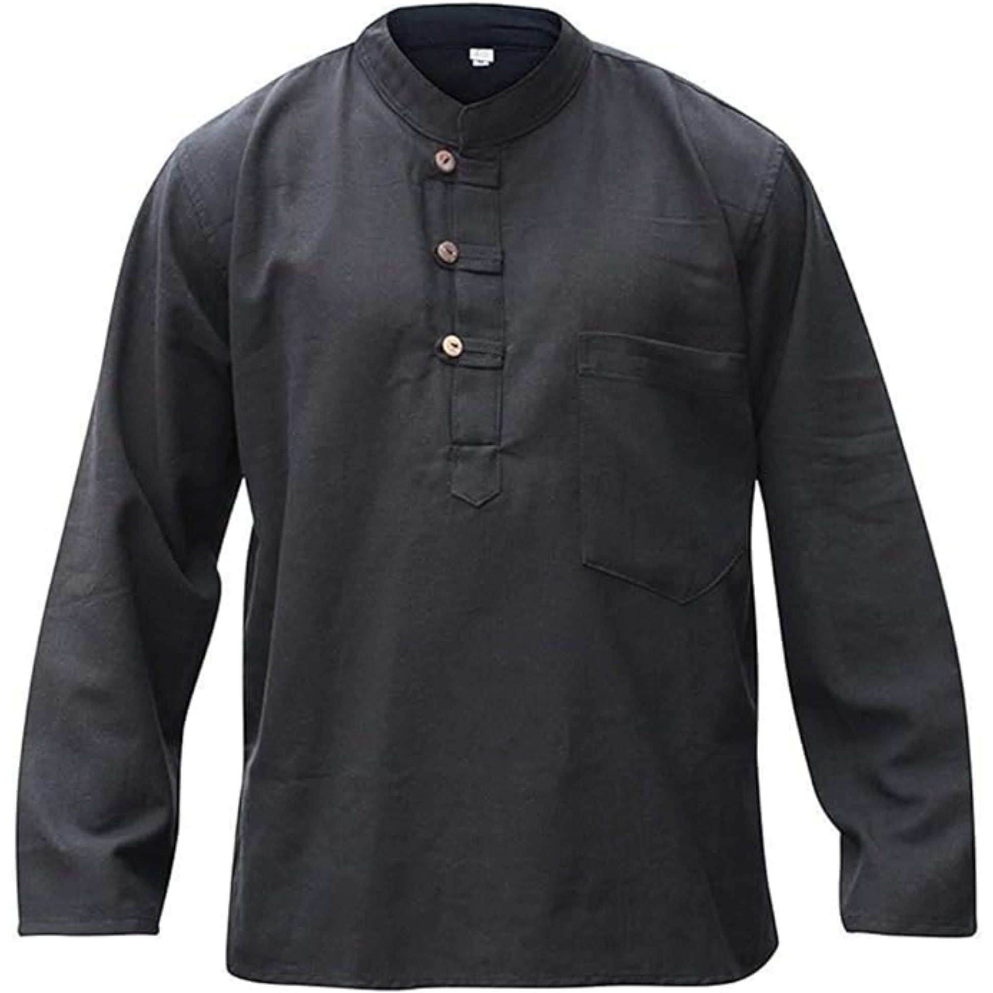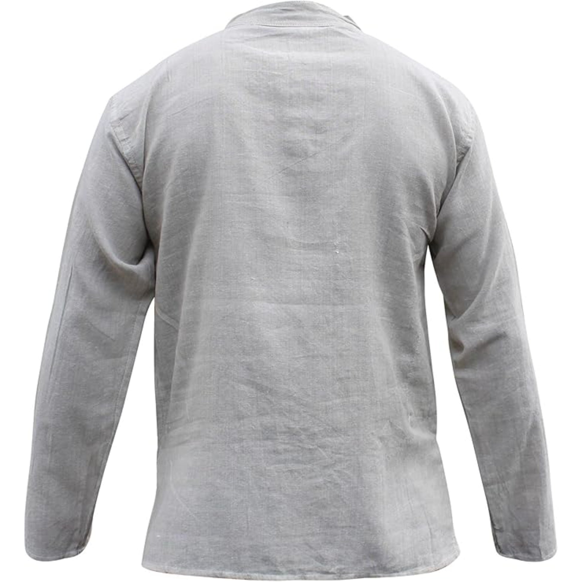 Mens Plain Hemp Band Collar Hippy Summer Light Tops Full Sleeve Grandad Shirt