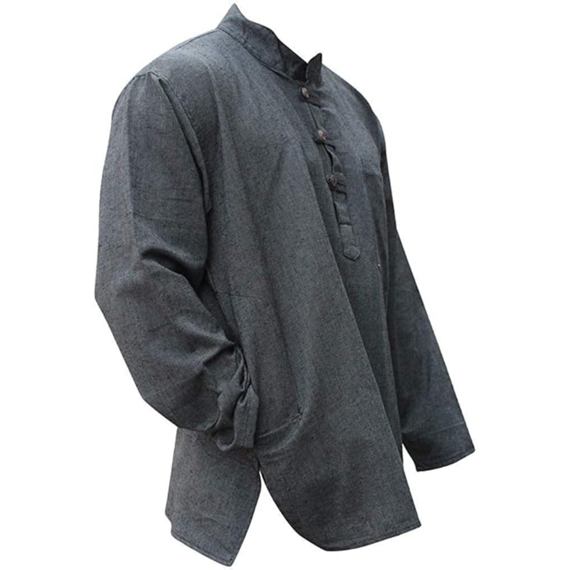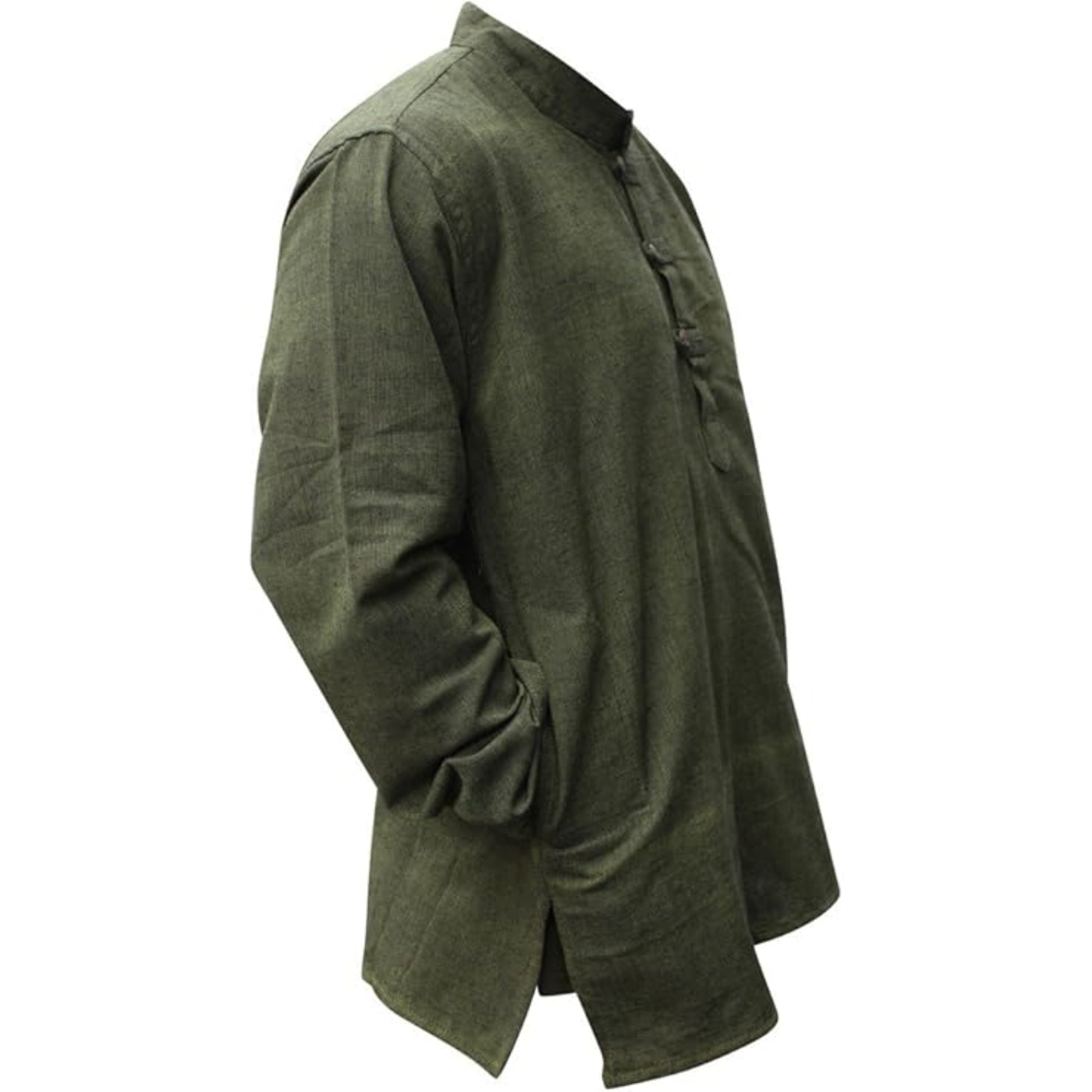 Our handmade Hemp Fabric Grandad Shirt – the perfect addition to your wardrobe for a timeless blend of style and functionality. Crafted from premium hemp fabric, this shirt offers a unique combination of sun protection and odour resistance, making it an essential choice for the modern man, providing comfort during hot summer days while keeping you cosy in the winter. With its plain design and light colour, this top is a versatile option suitable for any occasion, offering comfort and effortless style. The band collar and short slits not only enhance its aesthetic appeal but also ensure your neck and hips stay comfortable throughout the day. The long sleeves of this men's long-sleeve top not only add a fashionable touch but also protect it from the sun's rays, making it ideal for outdoor activities. Our grandad collar shirt also features concealed side and chest pockets, offering both style and functionality for your convenience. Elevate your wardrobe with the ultimate blend of comfort, style, and durability.