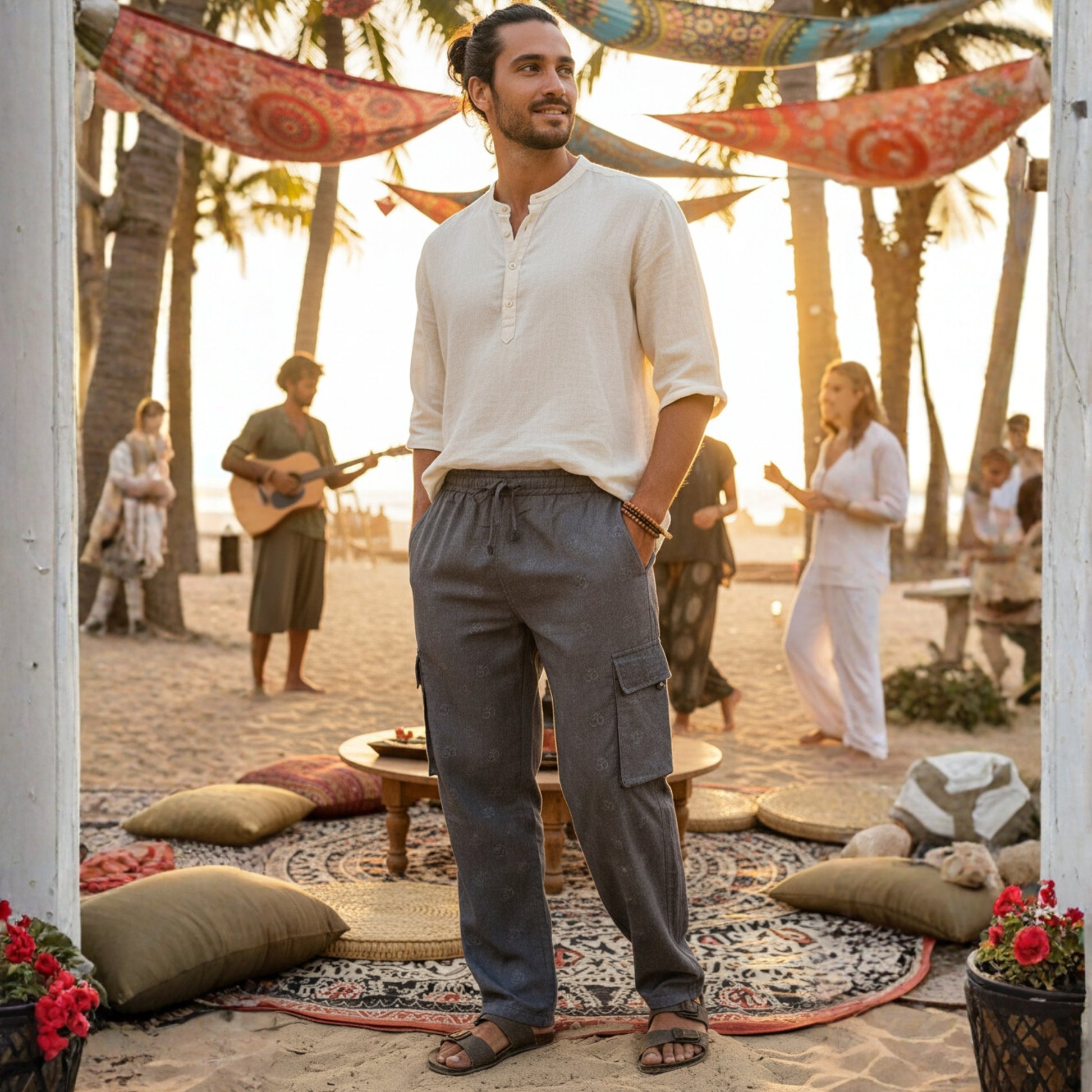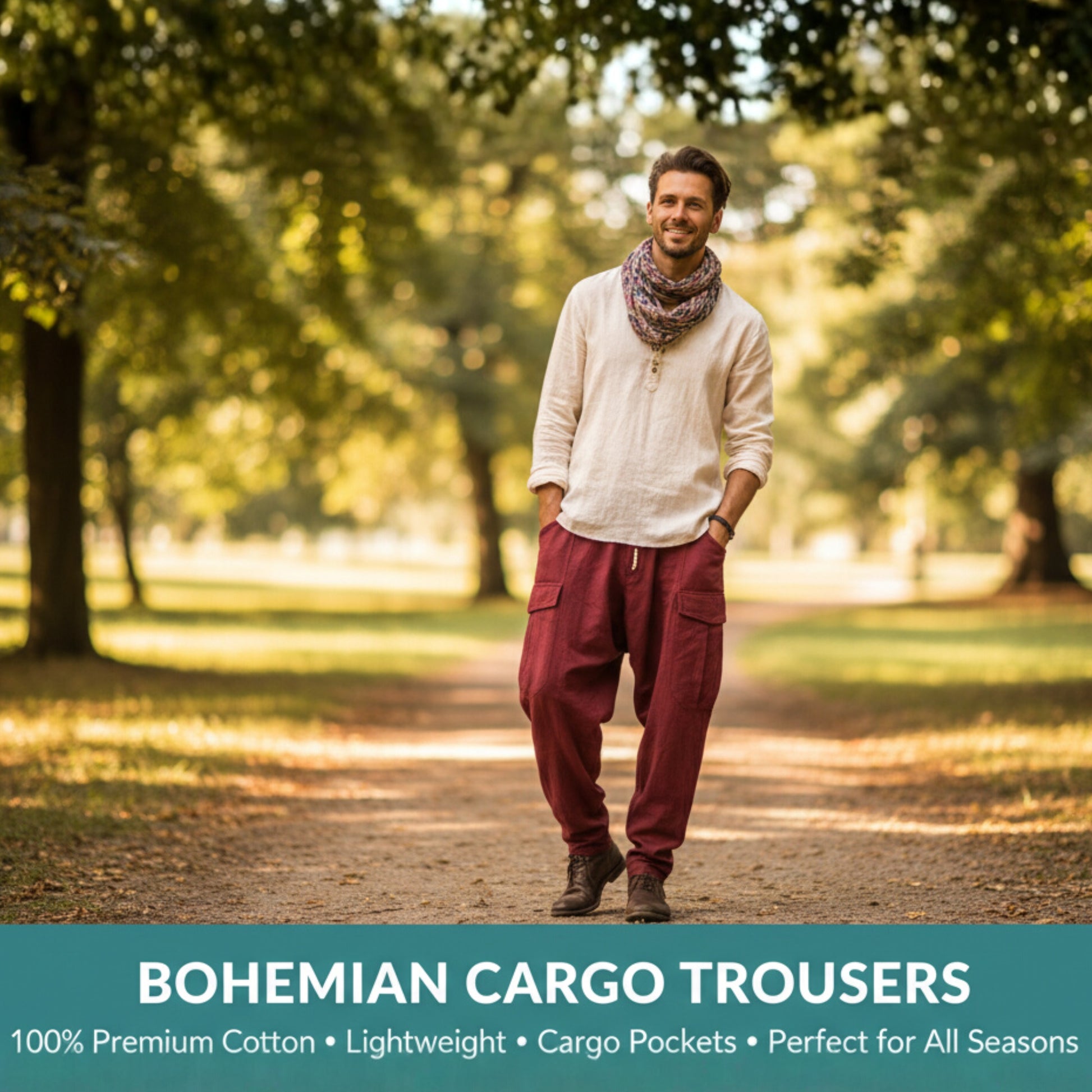 Mens Cargo Pant Plain Hippie Festival Casual Combat Trousers