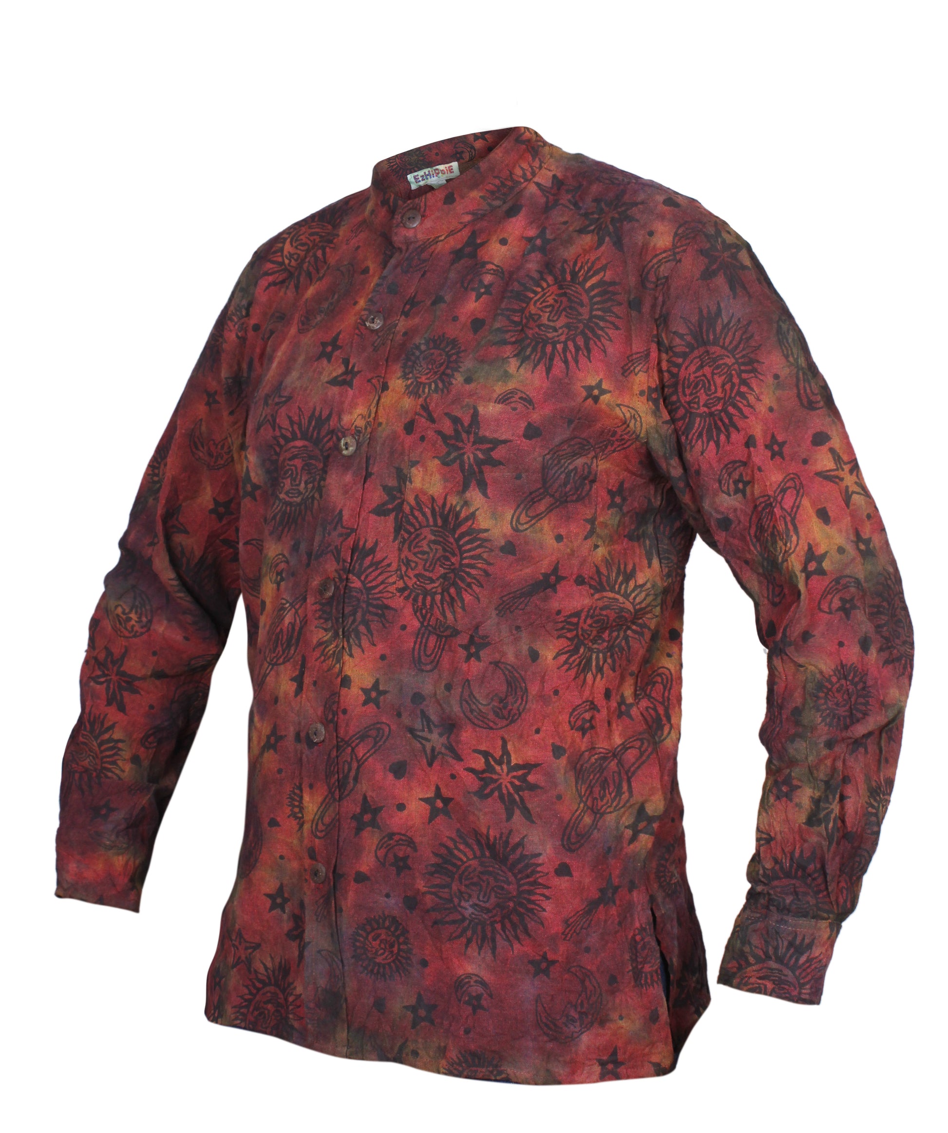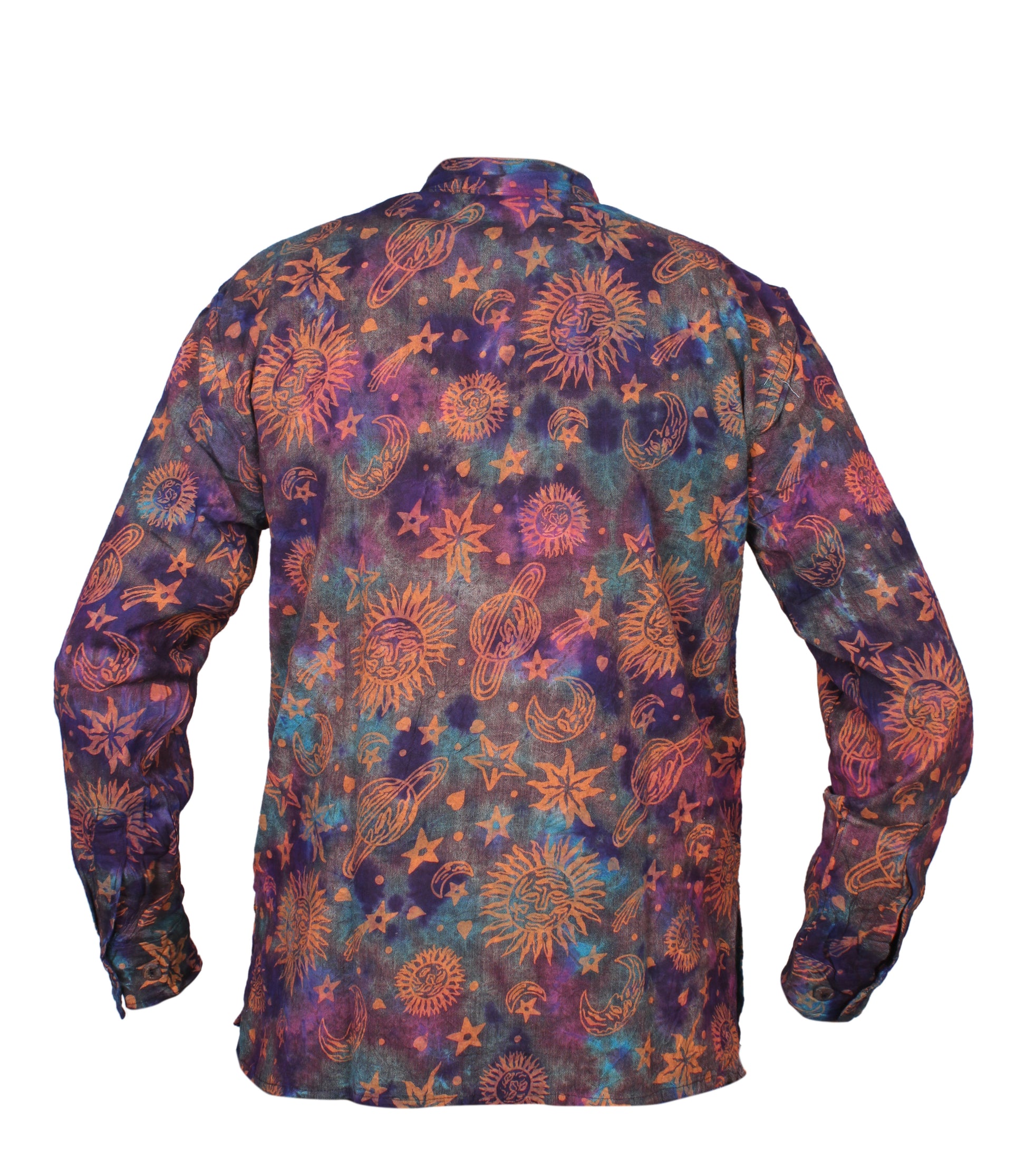 These grandad-style shirts, made from 100% tie-dye cotton, are the perfect choice for warm climates. Designed with a casual yet stylish look, they feature a collarless grandad-style neckline with three buttons at the top. Despite being long-sleeved, the lightweight fabric makes them ideal for summer or holiday wear. The vibrant tie-dye patterns offer a unique and eye-catching appeal, ensuring you stand out effortlessly. Handmade in Nepal, each shirt is crafted with care and is part of our fair trade collection, offering a stylish option for lounging or casual outings.