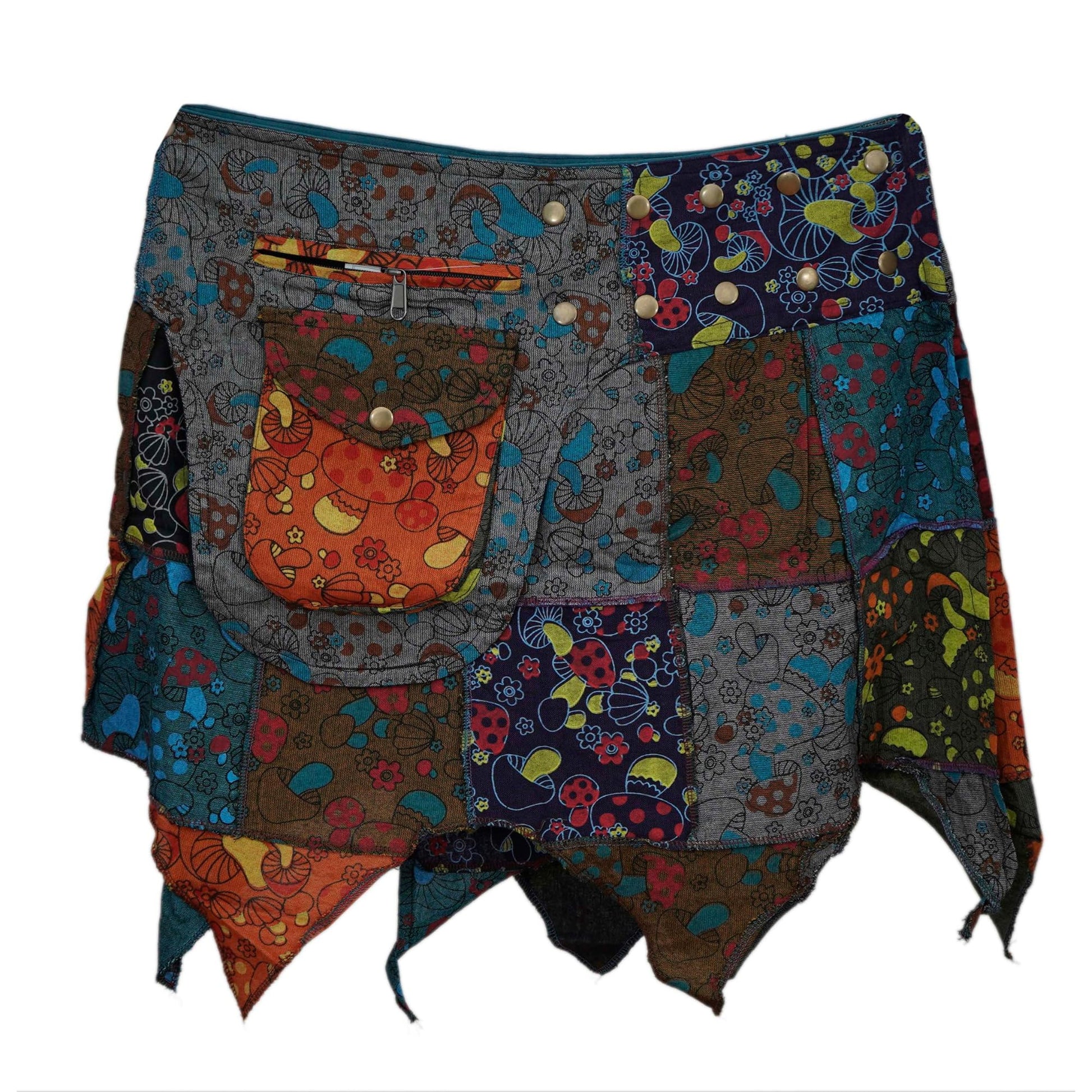 Women Hippie Popper Bohemian Mini Skirts with Hip Pockets