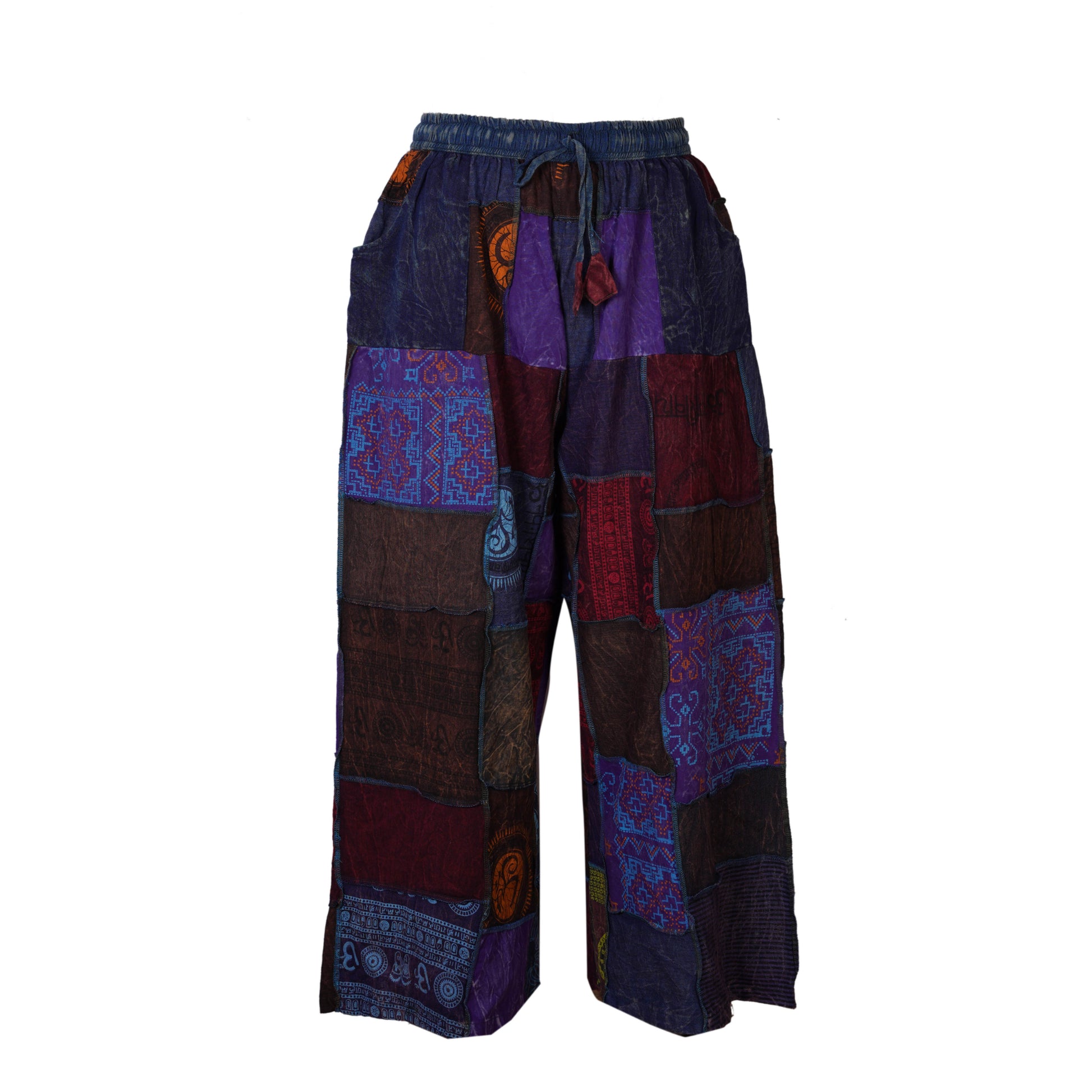 Ezhippie brings effortless bohemian charm to your wardrobe with these Women’s Multicolor Patchwork Cotton Trousers. Made from 100% breathable cotton, they feature wide legs and hand-stitched floral and tribal motifs that elevate everyday comfort with colorful, artistic expression. Perfect for shoppers seeking soft and versatile trousers, these relaxed-fit women’s trousers with an elasticated waist offer everyday comfort.